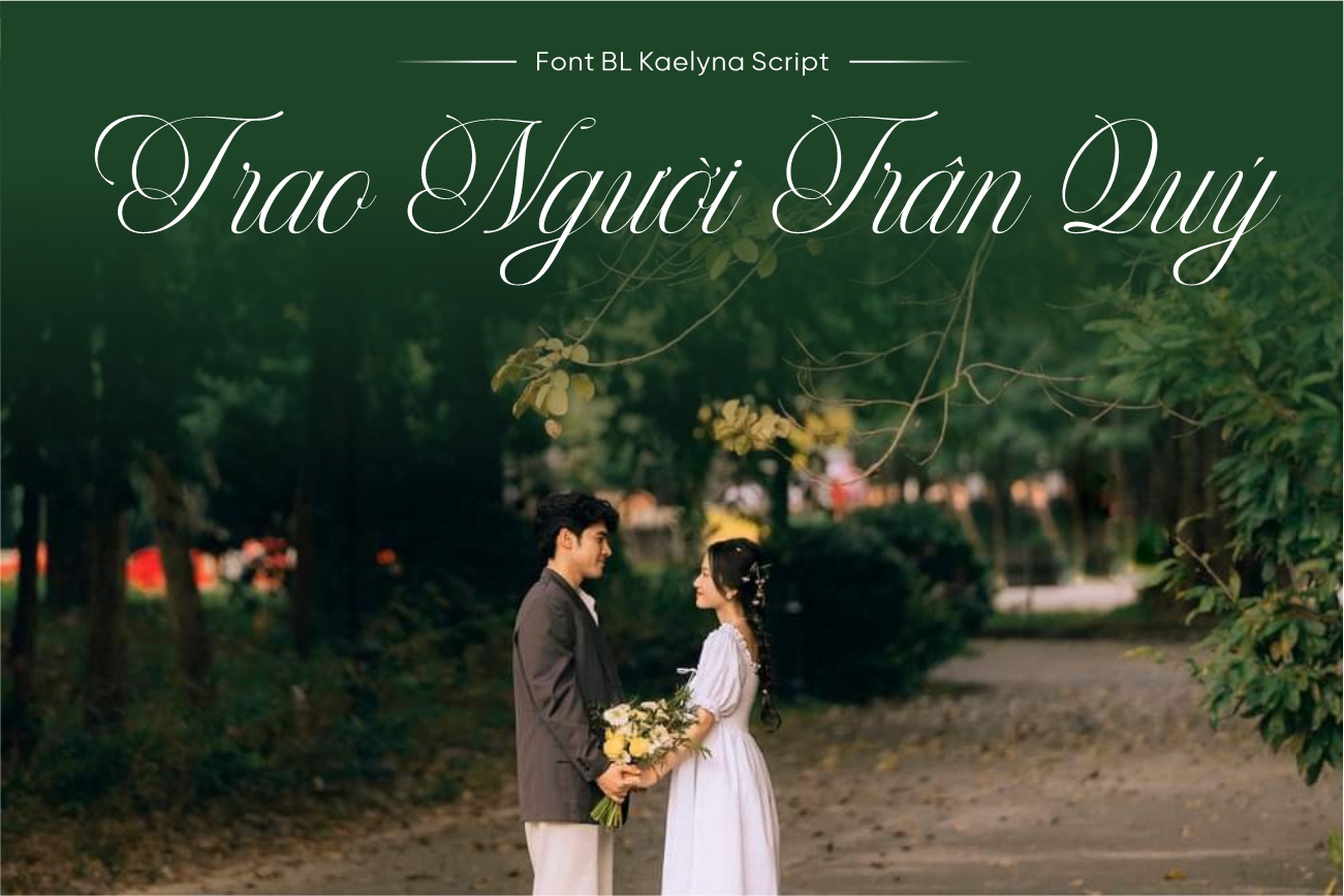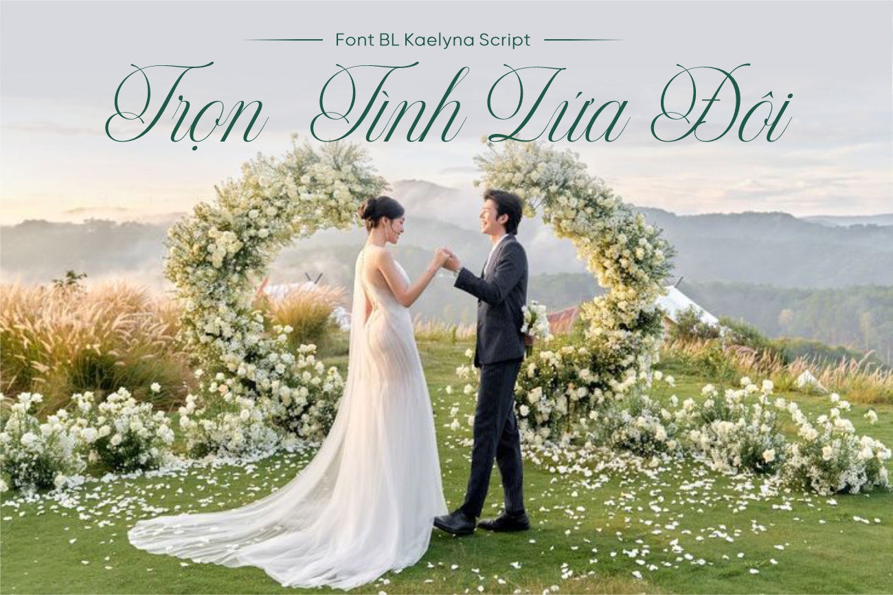 BL Kaelyna Script không chỉ phù hợp với thiết kế cưới hỏi mà còn được ứng dụng hiệu quả trong các lĩnh vực thời trang, mỹ phẩm, thiệp chúc mừng, logo thương hiệu cá nhân hoặc các dự án cần truyền tải cảm xúc nhẹ nhàng và tinh tế. Nhờ phong cách mềm mại nhưng vẫn chỉn chu, bộ chữ giúp nội dung trở nên gần gũi, trang nhã và dễ tạo thiện cảm với người xem. Khi sử dụng đúng bối cảnh, font phát huy tối đa vai trò của một font thiệp cưới thanh lịch và sang trọng, góp phần nâng tầm giá trị thẩm mỹ cho tổng thể thiết kế.