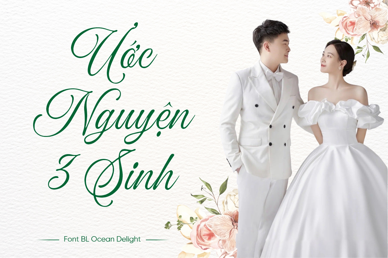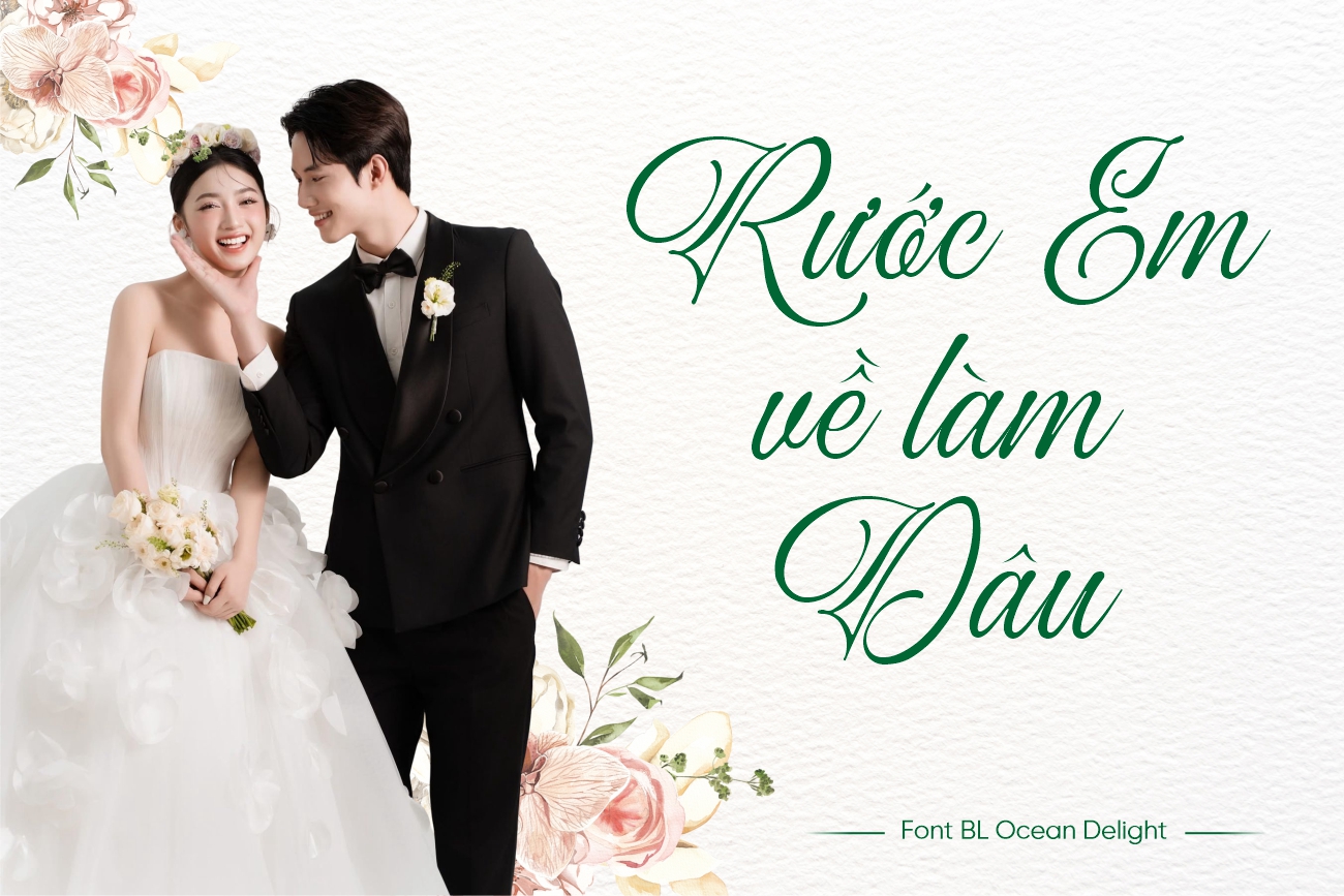 BL Ocean Delight là phiên bản Việt hóa của font chữ Ocean Delight do Blankids Studio thiết kế, được Team BL chỉnh sửa và hoàn thiện để phù hợp với tiếng Việt. Nguyên bản Ocean Delight mang tinh thần nhẹ nhàng, bay bổng, lấy cảm hứng từ chữ viết tay và cảm xúc tự nhiên của con người. Khi được Việt hóa, font vẫn giữ nguyên vẻ đẹp mềm mại ban đầu nhưng được bổ sung đầy đủ dấu và ký tự, giúp sử dụng trơn tru trong các ấn phẩm tiếng Việt. Nhờ đó, BL Ocean Delight nhanh chóng trở thành lựa chọn lý tưởng cho những ai đang tìm kiếm một font chữ thiệp cưới vừa tinh tế vừa giàu cảm xúc.