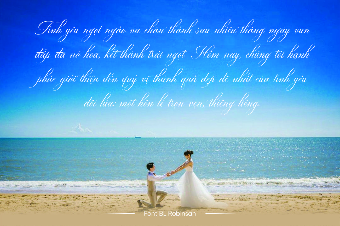 Font BL Robinsan là một kiểu chữ script hiện đại mang phong cách mềm mại và tinh tế, được thiết kế để tạo cảm giác gần gũi, bay bổng nhưng vẫn giữ được sự sang trọng.