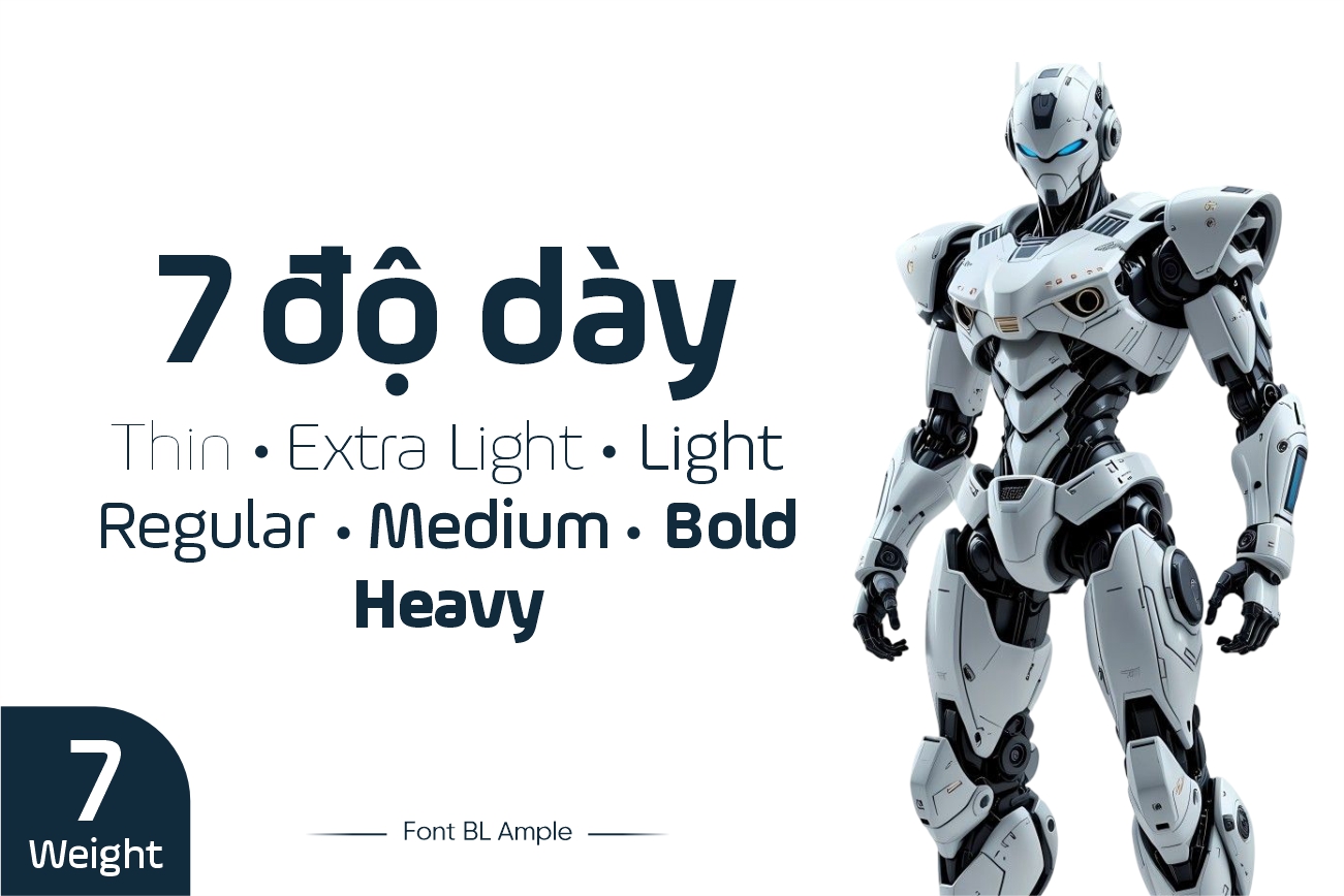 BL Ample là phiên bản Việt hóa của font chữ Ample do Aakash Soneri thiết kế, được Team BL chỉnh sửa và hoàn thiện để sử dụng trọn vẹn trong môi trường tiếng Việt. Ample ngay từ đầu đã được định hướng là một kiểu chữ hiện đại, phục vụ cho các nhu cầu thiết kế số, giao diện và truyền thông thương hiệu. Sau quá trình Việt hóa, BL Ample không chỉ giữ nguyên tinh thần thiết kế ban đầu mà còn được tối ưu về dấu, khoảng cách và tỷ lệ ký tự, giúp người dùng dễ dàng ứng dụng trong các dự án thực tế mà vẫn đảm bảo tính thẩm mỹ và độ chính xác cao.