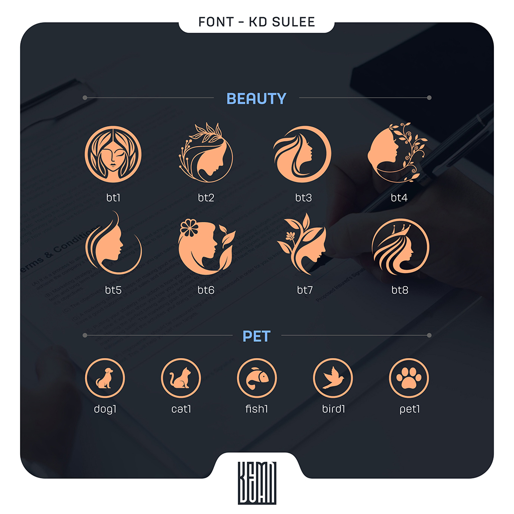 - Đặc biệt được thêm vào font rất nhiều icon với đủ nghành nghề rất thích hợp cho việc thiết kế Logo cá nhân, Beauty Spa hay Thiệp cưới.