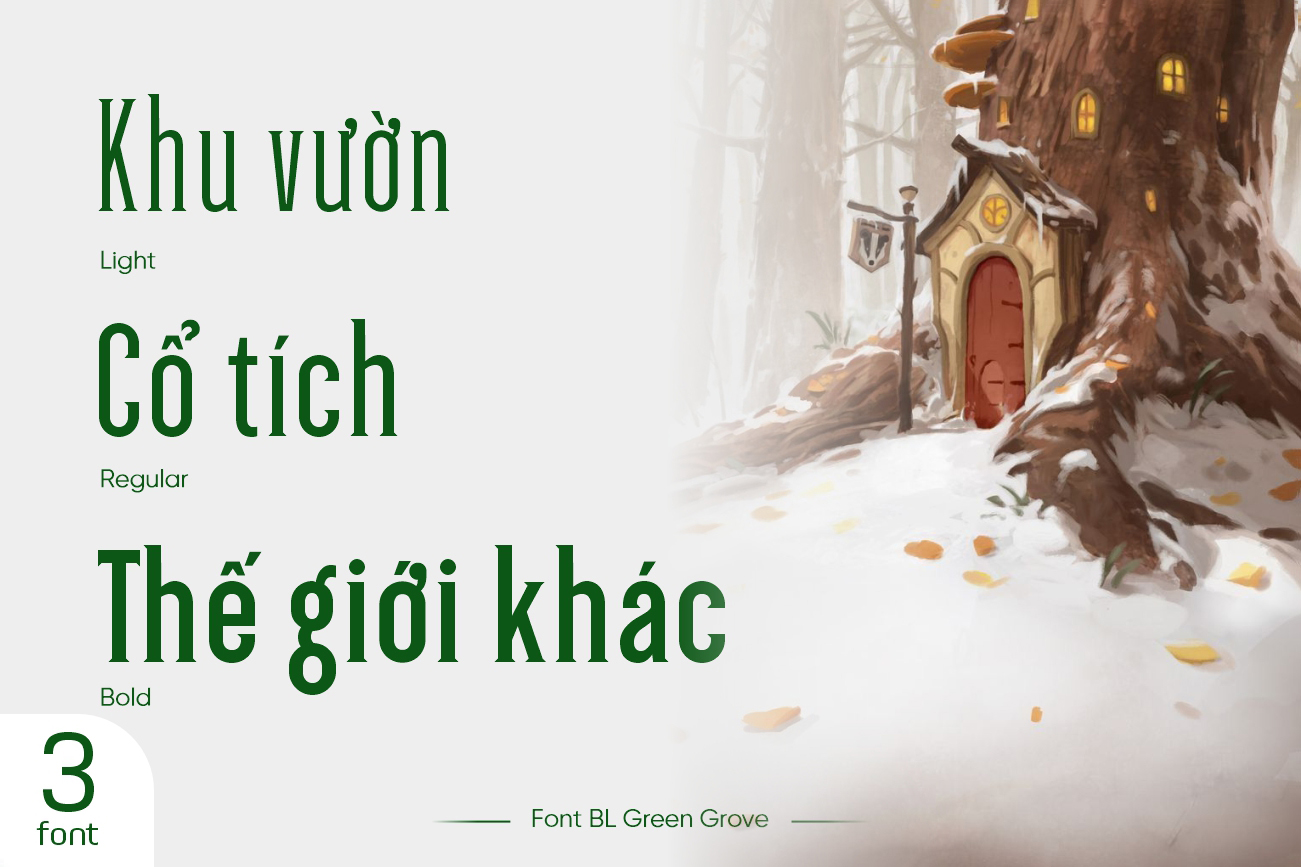 Nguồn gốc cảm hứng của Green Grove đến từ tinh thần gothic pha lẫn hơi thở thiết kế đương đại, nơi truyền thống và hiện đại giao thoa để tạo nên một bộ chữ mang bản sắc riêng. Khi được Team BL Việt hóa thành BL Green Grove, bộ font không chỉ giữ nguyên sự mạnh mẽ, nghệ thuật của phiên bản gốc mà còn trở nên thân thiện hơn với người dùng Việt nhờ khả năng hiển thị tiếng Việt hoàn hảo.