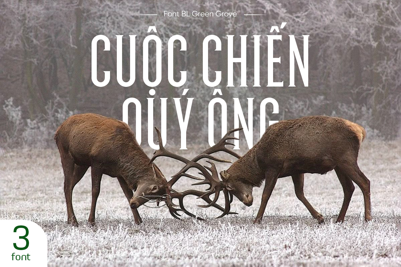 BL Green Grove là phiên bản Việt hóa từ bộ font Green Grove do Sergey Godovalov thiết kế, mang phong cách vừa cổ điển vừa đậm chất hiện đại, tạo nên một diện mạo độc đáo và đầy chiều sâu thị giác. Đây là một font serif gothic hiện đại, mang trong mình tinh thần mạnh mẽ nhưng vẫn được xử lý khéo léo để trở nên thanh lịch, sang trọng, phù hợp với nhiều dạng thiết kế khác nhau. Ngay từ cái nhìn đầu tiên, BL Green Grove tạo ấn tượng bởi cấu trúc chữ sắc nét, các chi tiết serif được làm sắc sảo nhưng không quá cứng, vừa gợi cảm giác quyền lực, vừa đem lại nét tinh tế rất đặc trưng.