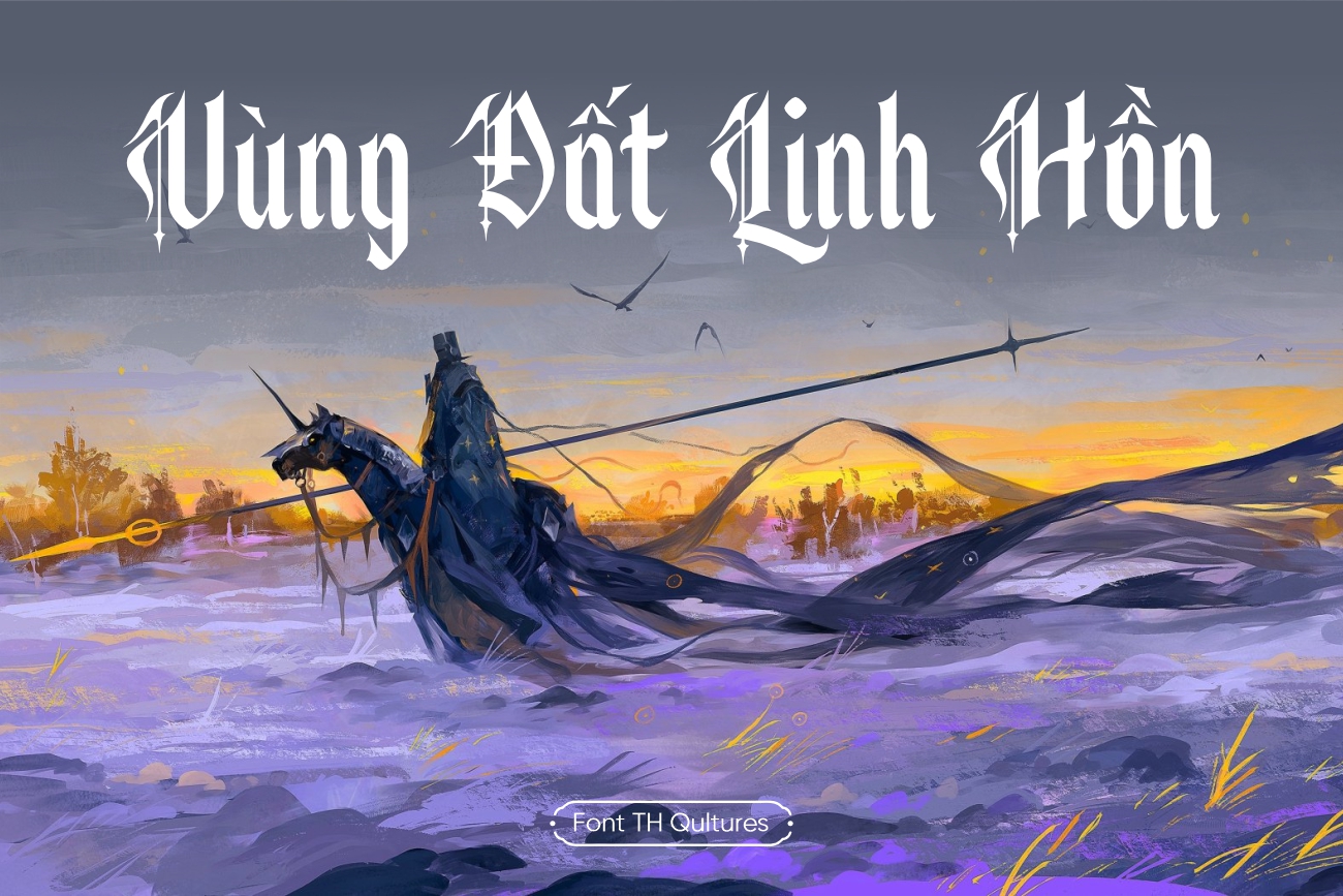 Nếu bạn đang tìm kiếm sự phá cách đầy mạnh mẽ cho các thiết kế mang hơi hướng huyền bí, TH Qultures chính là sự lựa chọn không thể bỏ qua. Đây là một mẫu font chữ Gothic (Blackletter) sở hữu những đường nét sắc sảo, dứt khoát và đầy uy quyền. Không giống như những font chữ mềm mại thông thường, TH Qultures mang trong mình linh hồn của những câu chuyện thần thoại phương Tây, tái hiện lại vẻ đẹp gai góc của những bản thảo viết tay từ thời trung cổ nhưng được cách điệu để phù hợp với thị giác hiện đại.